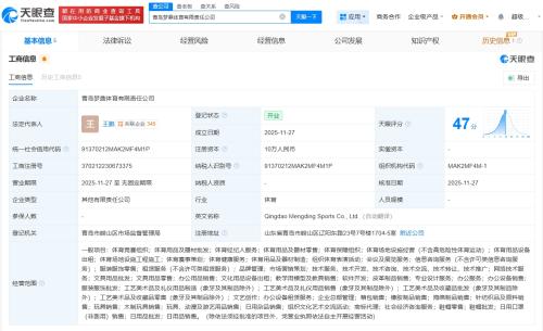 天眼查工商信息显示,近日,青岛梦鼎体育有限责任公司成立,法定代表人为王鹏,注册资本10万人民币,经营范围包括体育竞赛组织、体育用品及器材批发、体育经纪人服务、组织体育表演活动等。股权全...