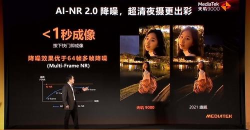 此外,天玑9000在进行暗光拍摄时,同样能调用APU590,用强劲的AI算力来进行夜景降噪处理,而不是基于传统低效的多帧降噪技术。