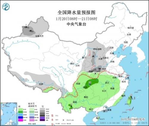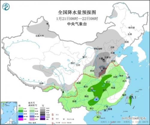 据中国气象台,1月20日开始至24日,我国将迎来今年迄今最大范围的雨雪过程,影响范围涉及超过25个省份。