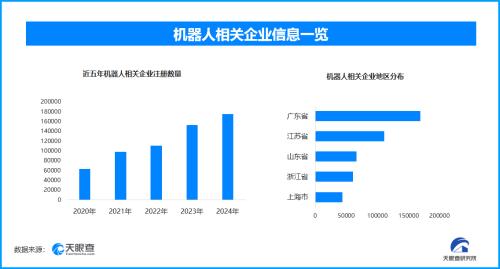 天眼查数据显示,现存机器人相关企业96.6万余家,2025年1月到现在新增注册相关企业14.8万余家,与2024年同期相比增长64.4%;