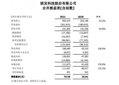 近期,联发科公布了2021年第四季度及全年财报。数据显示,2021年全年营收达到4934亿新台币(约合人民币1127亿元),同比增长53.2%,再创历史新高。此外,联发科2021年第四季度营收共计为1286亿元新台币(约合294亿元人民币),较去年同期增长33.5%。
