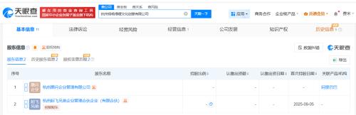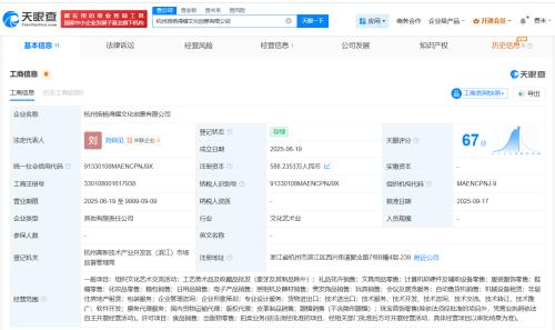 杭州扬杨得熠文化创意有限公司成立于今年6月,法定代表人为刘焱见,经营范围包括组织文化艺术交流活动、礼品花卉销售、文具用品零售等。股东信息显示,该公司现由杭州起飞兄弟企业管理合伙企业(有限合伙)及上述新增公司共同持股。