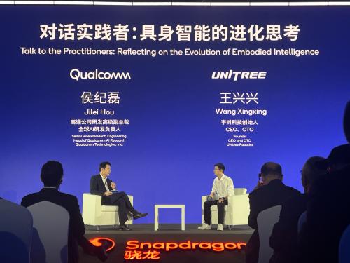 在2025高通骁龙峰会上,高通公司研发高级副总裁、全球AI研发负责人侯纪磊与宇树科技创始人CEO王兴兴展开了一场对话,分享了对具身智能及人形机器人产业发展的最新思考和判断。