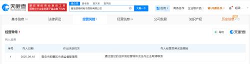 天眼查工商信息显示,近日,青岛胡杨树电子商务有限公司因通过登记的住所或经营场所无法与企业取得联系,被青岛市即墨区市场监督管理局列入经营异常名录。
