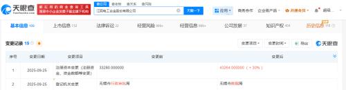 天眼查工商信息显示,近日,电工合金(300697)发生工商变更,注册资本由约3.3亿人民币增至约4.3亿人民币,增幅30%。