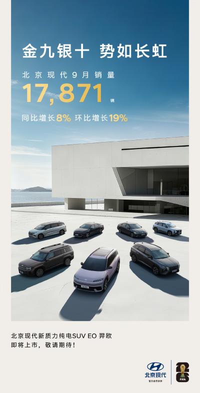 北京现代9月销量17,871辆,同比增长8%,环比增长19%。