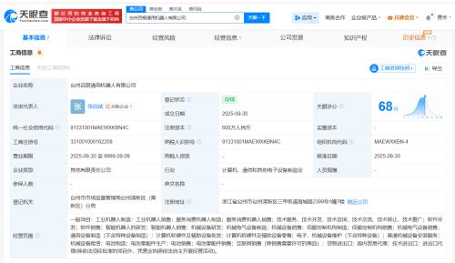 天眼查App显示,近日,台州百银通用机器人有限公司成立,法定代表人为张启斌,注册资本600万人民币,经营范围包括工业机器人制造、工业机器人销售、服务消费机器人制造等,由百达精工(603331)、北京银河通用机器人有限公司、台州百聚灿达企业管理合伙企业(有限合伙)共同持股。