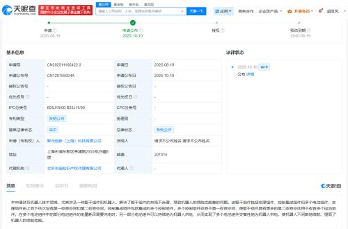 天眼查App显示,10月10日,智元机器人关联公司智元创新(上海)科技有限公司申请的“躯干组件和机器人”专利公布。