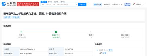 天眼查App显示,近日,重庆长安汽车股份有限公司申请的“整车空气动力学性能优化方法、装置、计算机设备及介质”专利公布。