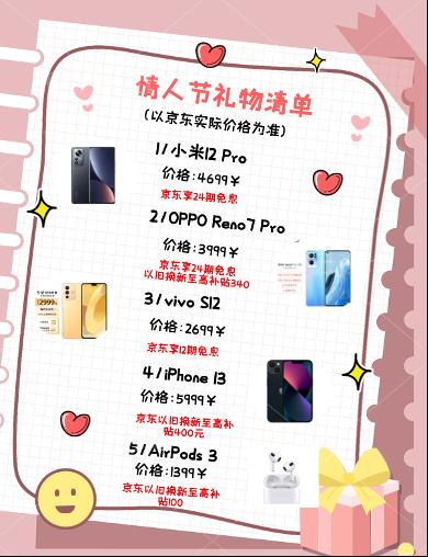 再过几天就要迎来一个关于爱和浪漫的节日---情人节。虽说选对了人情人节每天都过,但是当情人节到来之时,怎么能够不为另一半准备一份贴心的礼物?可这却难倒了不少人。今年情人节如果你还没选好礼物的话,不如送心爱的TA一台手机,既有贵重的心意,更有贴心的陪伴,不知道怎么选的话就快来抄作业吧。不仅如此,京东购买手机还可享一站式以旧换新至高得3800元E卡、9.9服务包等品质服务,千万不要错过哦。