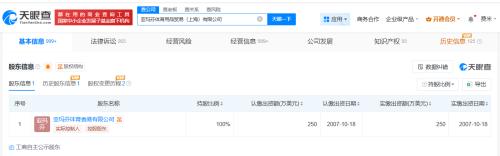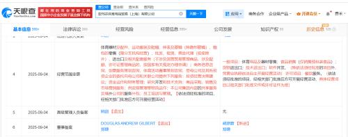 天眼查App显示,始祖鸟关联公司亚玛芬体育用品贸易(上海)有限公司成立于2007年9月,法定代表人为马磊,注册资本250万美元,经营范围包括体育用品及器材零售、食品销售、软件开发等,由亚玛芬体育香港有限公司全资持股。