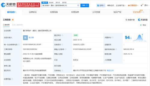 天眼查App显示,近日,赛力斯海外(重庆)国际贸易有限公司成立,法定代表人为张兴燕,注册资本3亿人民币,经营范围包括新能源汽车整车销售、汽车零配件零售、汽车装饰用品销售等,由赛力斯(601127)全资持股。
