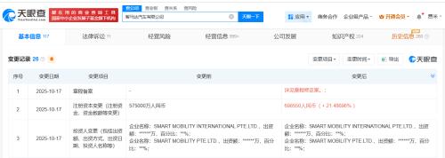 天眼查App显示,近日,智马达汽车有限公司发生工商变更,注册资本由57.5亿人民币增至约69.9亿人民币,增幅约21%。