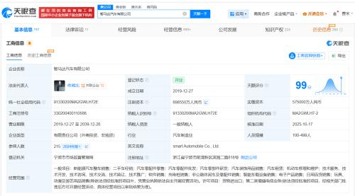 该公司成立于2019年12月,法定代表人为佟湘北,经营范围包括新能源汽车整车销售、二手车经销、汽车零配件零售等,由SMART MOBILITY PTE.LTD.等共同持股。