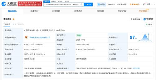 天眼查App显示,近日,广西玉柴倍增一期产业发展基金合伙企业(有限合伙)成立,执行事务合伙人为招商致远资本投资有限公司,出资额10亿人民币,经营范围包括以私募基金从事股权投资、投资管理、资产管理等活动。合伙人信息显示,该基金由广西玉柴机器股份有限公司、广西投资引导基金有限责任公司、招商致远资本投资有限公司、广西玉林投资控股集团有限公司共同出资。