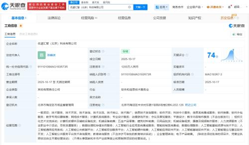 天眼查工商信息显示,近日,优谱汇智(北京)科技有限公司成立,法定代表人为陈峰波,注册资本1200万人民币,经营范围包括科技中介服务、信息系统集成服务、软件销售、软件外包服务、教学专用仪器销售等。股东信息显示,该公司由优必选(09880.HK)、优选汇智(北京)科技有限公司共同持股。