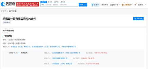 天眼查天眼风险信息显示,10月21日,乐视控股(北京)有限公司、乐视网信息技术(北京)股份有限公司、乐视云计算有限公司新增一则恢复执行信息,执行标的1.09亿余元,执行法院为北京市第一中级人民法院。