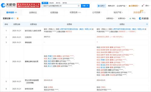 天眼查App显示,近日,长春市产业投资集团有限公司发生工商变更,注册资本由约9.61亿增至20亿人民币,增幅约108%,同时发生高管变更。长春市产业投资集团有限公司成立于2014年3月,法定代表人为贡博...