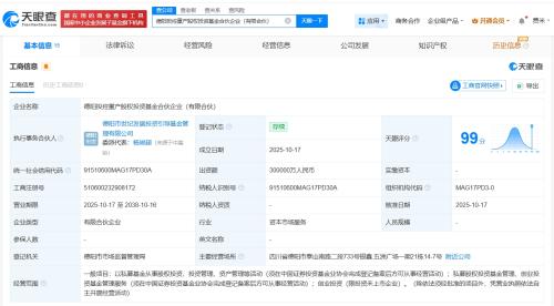 天眼查App显示,近日,德阳投控重产股权投资基金合伙企业(有限合伙)成立,执行事务合伙人为德阳市世纪发展投资引导基金管理有限公司,出资额30亿人民币,经营范围为以私募基金从事股权投资、投资管理、资产管理等活动,私募股权投资基金管理、创业投资基金管理服务,创业投资,由德阳投控产业投资引导基金合伙企业(有限合伙)、德阳市世纪发展投资引导基金管理有限公司共同出资。
