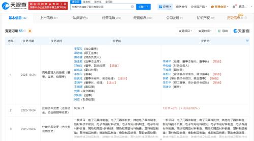 天眼查App显示,近日,达瑞电子(300976)发生工商变更,注册资本由9537.71万人民币增至约1.33亿人民币,增幅约39.6%,同时多位高管发生变更。