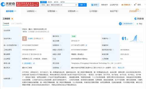 天眼查App显示,近日,洋码头(重庆)国际科技有限公司因通过登记的住所或者经营场所无法联系,被重庆市渝中区市场监督管理局列入经营异常名录。该公司成立于2014年3月,法定代表人为王迪亮,注册资...