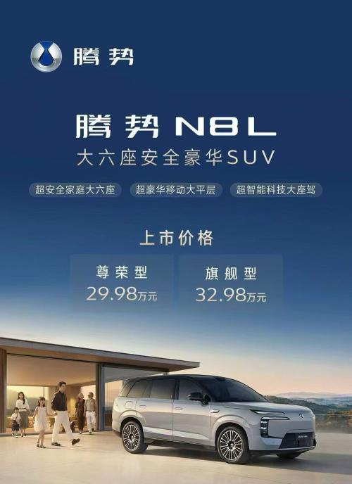 比亚迪腾势N8L今日宣布正式上市,定位“大六座安全豪华SUV”,号称“科技出行移动空间”,官方指导价29.98万元起。