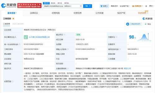 天眼查App显示,近日,湖南湘江科技创新院合伙企业(有限合伙)成立,执行事务合伙人为长沙湘江科创投资有限公司,出资额12.46亿人民币,经营范围包括人工智能应用软件开发、人工智能行业应用系统集成服务、人工智能硬件销售等,由湖南湘江新区国有资本投资有限公司、湖南兴湘投资控股集团有限公司、湖南财信经济投资有限公司等共同出资。