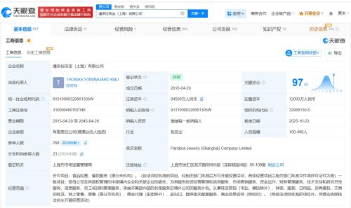 该公司成立于2015年4月,法定代表人为THOMAS STRØMGÅRD KNUDSEN,经营范围包括从事珠宝首饰、钟表、服装、日用品、皮具箱包、文具的批发、网上零售、零售等,由潘多拉珠宝香港有限公司全资持股。