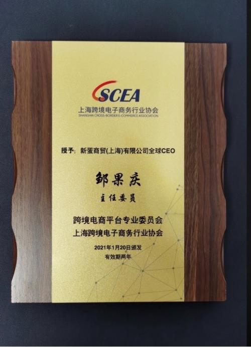 2021年1月新蛋集团全球CEO邹果庆先生被任命为上海跨境电子商务行业协会专委会跨境电商平台专委会主任委员。同期跨境电商平台专委会还任命了二位副主任委员,他们分别为上海洋码头网络技术有限公司CEO曾碧波先生和京东集团华东区副总经理彭程先生。