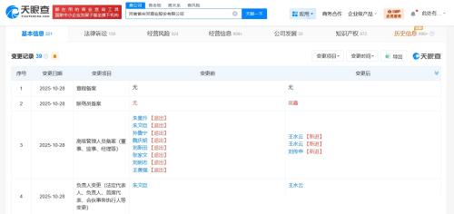 天眼查App显示,近日,河南省宋河酒业股份有限公司发生工商变更,朱文臣卸任法定代表人、董事长,由王水云接任法定代表人并担任董事、总经理,同时,多位高管均发生变更。