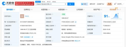 河南省宋河酒业股份有限公司成立于1999年8月,注册资本约1.75亿人民币,经营范围为白酒酿造、销售,中国老子养生酒、虫草酒酿造销售,由辅仁药业集团有限公司、嘉兴和瑾春华投资合伙企业(有限合伙)、喀什中盛创投有限公司、朱文臣等共同持股。