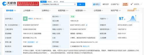 天眼查工商信息显示,近日,捷捷微电(300623)发生工商变更,注册资本由约7.35亿人民币增至约8.32亿人民币,增幅约13%。