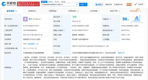 天眼查工商信息显示,近日,中海油能源发展装备技术有限公司发生工商变更,注册资本由约4.8亿人民币增至约6.2亿人民币,增幅约29%,同时,部分高管发生变更。
