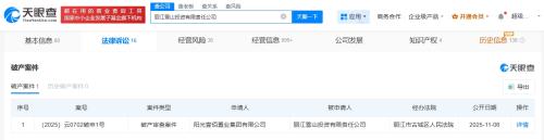 天眼查天眼风险信息显示,11月6日,丽江雪山投资有限责任公司新增1则破产审查案件,申请人为阳光壹佰置业集团有限公司,经办法院为丽江市古城区人民法院。