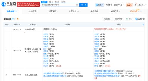 天眼查工商信息显示,近日,唐山工业控股集团有限公司发生工商变更,新增中国中信金融资产管理股份有限公司为股东,注册资本由85亿人民币增至92.8亿人民币,增幅约9%,同时,部分高管也发生变更。