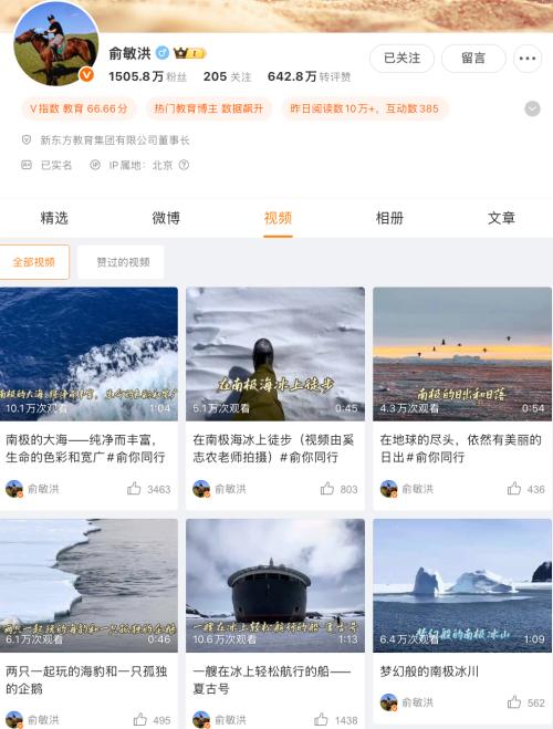 新东方董事长俞敏洪因在南极发公司内部信被员工吐槽后,11月17日深夜至18日上午,他又在社交平台连发10条南极游视频。俞敏洪本人在其中第一条的评论区表示:前几天一直没有什么信号,这个视频是四天前做的。