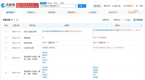 天眼查App显示,近日,四川省宜宾环球集团有限公司发生工商变更,注册资本由5.5亿人民币增至约8.37亿人民币,增幅约52%。