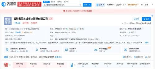 该公司成立于2018年3月,法定代表人为邓东磊,注册资本1200万人民币,经营范围包括食品互联网销售、餐饮服务、企业管理、二手日用百货销售等。股东信息显示,该公司由河南蜜雪冰城饮品有限公司全资持股。