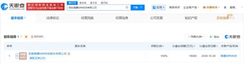 天眼查App显示,近日,茂名海螺材料科技有限公司成立,法定代表人为陈烽,注册资本1.8亿人民币,经营范围包括专用化学产品制造、专用化学产品销售、合成材料制造、合成材料销售等。股东信息显示,该公司由海螺材料科技(02560.HK)全资持股。