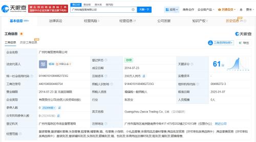 天眼查经营风险信息显示,近日,广州市优实启商贸有限公司、广州灶咖贸易有限公司因通过登记的住所或者经营场所无法联系,被广州市海珠区市场监督管理局列入经营异常名录。