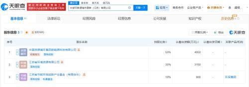 天眼查App显示,近日,中资环新源城市更新(江苏)有限公司成立,法定代表人为李九辰,注册资本9000万人民币,经营范围包括建设工程施工、建设工程勘察、建设工程监理、资源再生利用技术研发等。股东信息显示,该公司由中国资源循环集团新能源科技有限公司、江苏省环境资源有限公司、江苏省节能环保战新产业基金(有限合伙)共同持股。