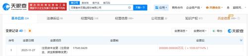 天眼查App显示,近日,河南省宋河酒业股份有限公司发生工商变更,注册资本由约1.75亿人民币增至20亿人民币,增幅约1040%。
