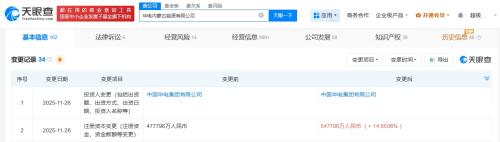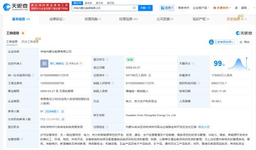 天眼查App显示,近日,华电内蒙古能源有限公司发生工商变更,注册资本由约47.78亿人民币增至约54.78亿人民币,增幅约14.65%。