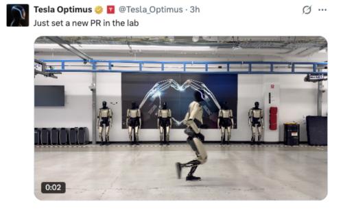 北京时间12月3日,特斯拉CEO马斯克在社交平台X转发特斯拉擎天柱(Optimus)团队发布一段"擎天柱"人形机器人跑步的短视频。该团队配文称: 刚在实验室刷新了个人纪录(PR,Personal Record)。