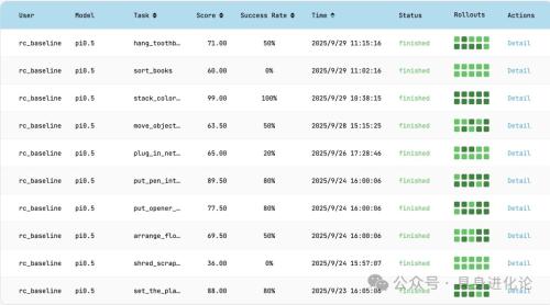 一位具身智能从业者对“具身进化论”分析,RoboChallenge的独特价值正是在于提供透明、可复现的真机评估环境,避免主观展示带来的偏差。随着越来越多模型加入测评,业内对“模型真实能力差异”有了更清晰的认知。