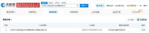 天眼查App显示,近日,北京开心麻花悦品文化传播有限公司登记状态由存续变更为注销。此前,该公司已发布简易注销公告。