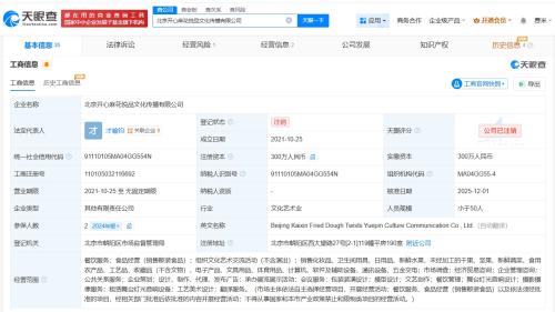 该公司成立于2021年10月,法定代表人为才喻钧,注册资本300万人民币,经营范围包括餐饮服务、食品经营、组织文化艺术交流活动等,由天津开心麻花剧院管理有限公司、北京佳客悦品文化传播有限公司共同持股。
