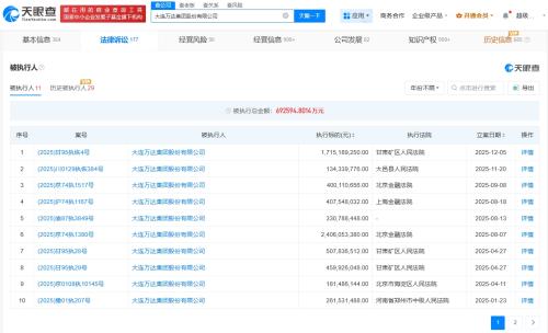 天眼查天眼风险信息显示,近日,大连万达集团股份有限公司、万达地产集团有限公司等新增1条恢复执行信息,执行标的17亿余元,执行法院为甘肃矿区人民法院。