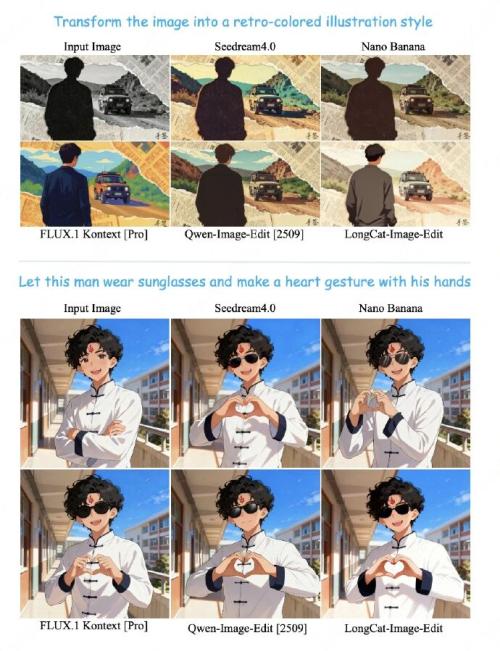 美团LongCat团队正式发布并开源图像生成模型LongCat-Image模型,通过高性能模型架构设计、系统性的训练策略和数据工程,以6B参数规模,成功在文生图和图像编辑的核心能力维度上逼近更大尺寸模型效果。