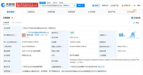 天眼查App显示,近日,广州白云产投创业投资基金合伙企业(有限合伙)成立,执行事务合伙人为广州产投私募基金管理有限公司,出资额1亿人民币,经营范围为以私募基金从事股权投资、投资管理、资产管理等活动,由广州白云产业发展服务有限公司、广州创新投资母基金合伙企业(有限合伙)、广州产投私募基金管理有限公司共同出资。